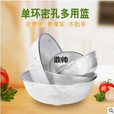 不锈钢无磁加厚洗米筛 密孔多用篮单环洗菜盆洗米盆居家厨房用品