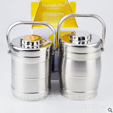 不锈钢保温提锅 双层保温便当盒 圆形饭盒带盖带格 密封防溢提锅