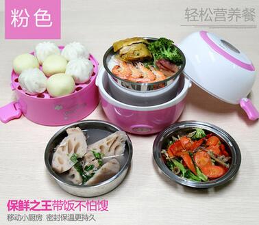 三层多功能电热饭盒不锈钢内胆双层加热饭盒 蒸煮热煲饭盒批发