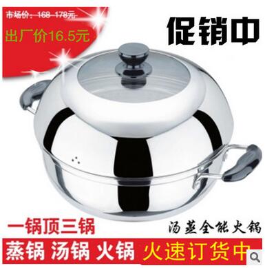 汤蒸锅加厚不锈钢汤锅多用火锅 蒸锅 双耳锅具电磁炉通用 430材质