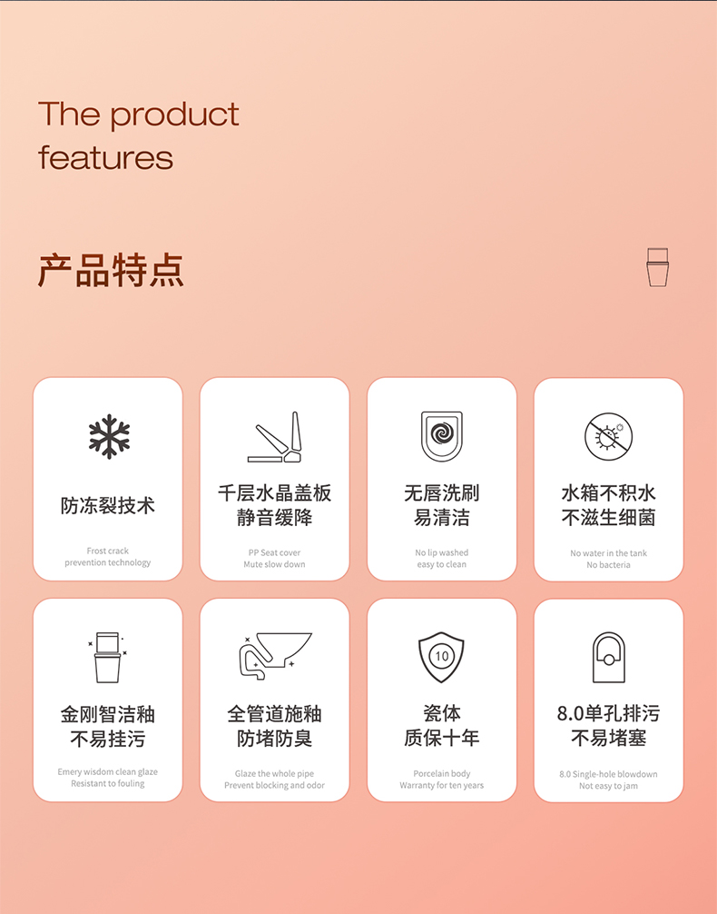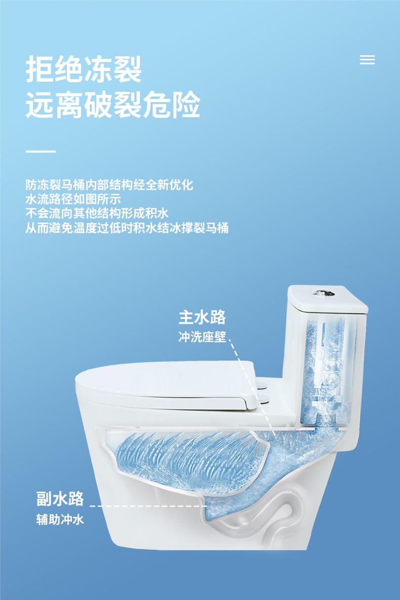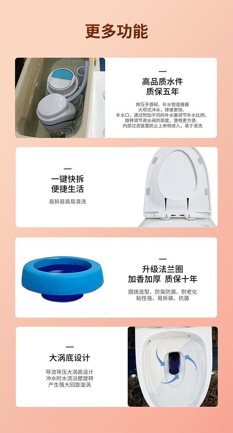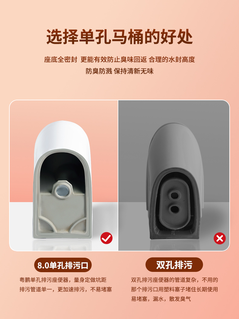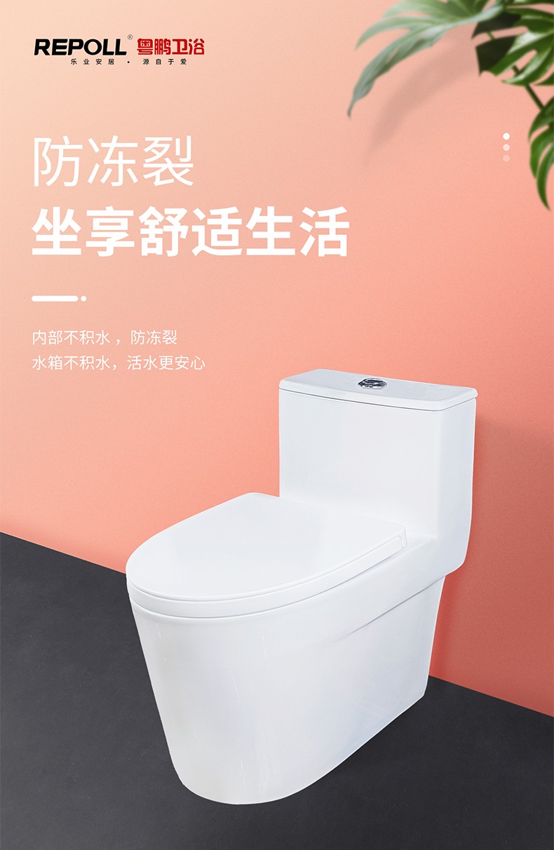 粤鹏座便器超漩虹吸式防冻裂大管道水箱下凹设计陶瓷马桶卫生间8258