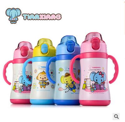 天象正品儿童双耳吸管壶不锈钢保温杯学生水杯280ML