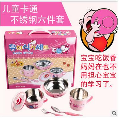 卡通儿童餐具套装304不锈钢碗六件套 防摔隔热宝宝餐具
